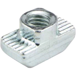 Drop-In T-Nuts: These fasteners are designed to quickly and easily fit into T-slot openings. To insert, use a screw to aid with insertion and then rotate until engagement. These nuts are designed to fit straight into the t-slot opening and then rotate until secure. The width should always be less than the T-slot opening dimension.