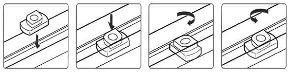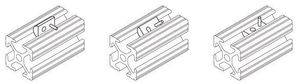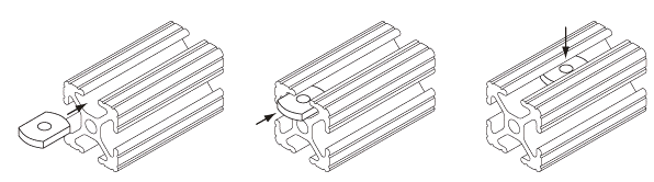 Slide-In T-Nuts: Slide-in T-nuts have to be inserted from the end of the V-slot. Pre-load is required during assembly.