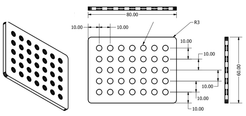 Our Easy Build Plates make it quick and easy to join various profiles and sizes of V-Slot together in a huge number of possible ways. They're also great for mounting various peripherals and come with all holes at 10mm centers. Plus, they're finished with anodized black brushed aluminum for a professional look. The “5×7” refers to the array of holes in the plate and not the total size.
