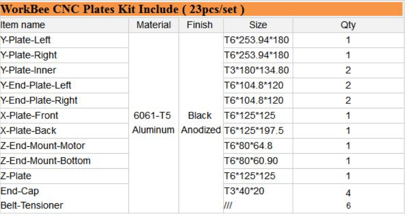 Plates have also been added or modified to completely cover any bare extrusion ends. All the plates supplied with the kit are manufactured from 6061-T5 Aluminium. The plates are then shot blast and anodised in matt black, to give a very clean finish.